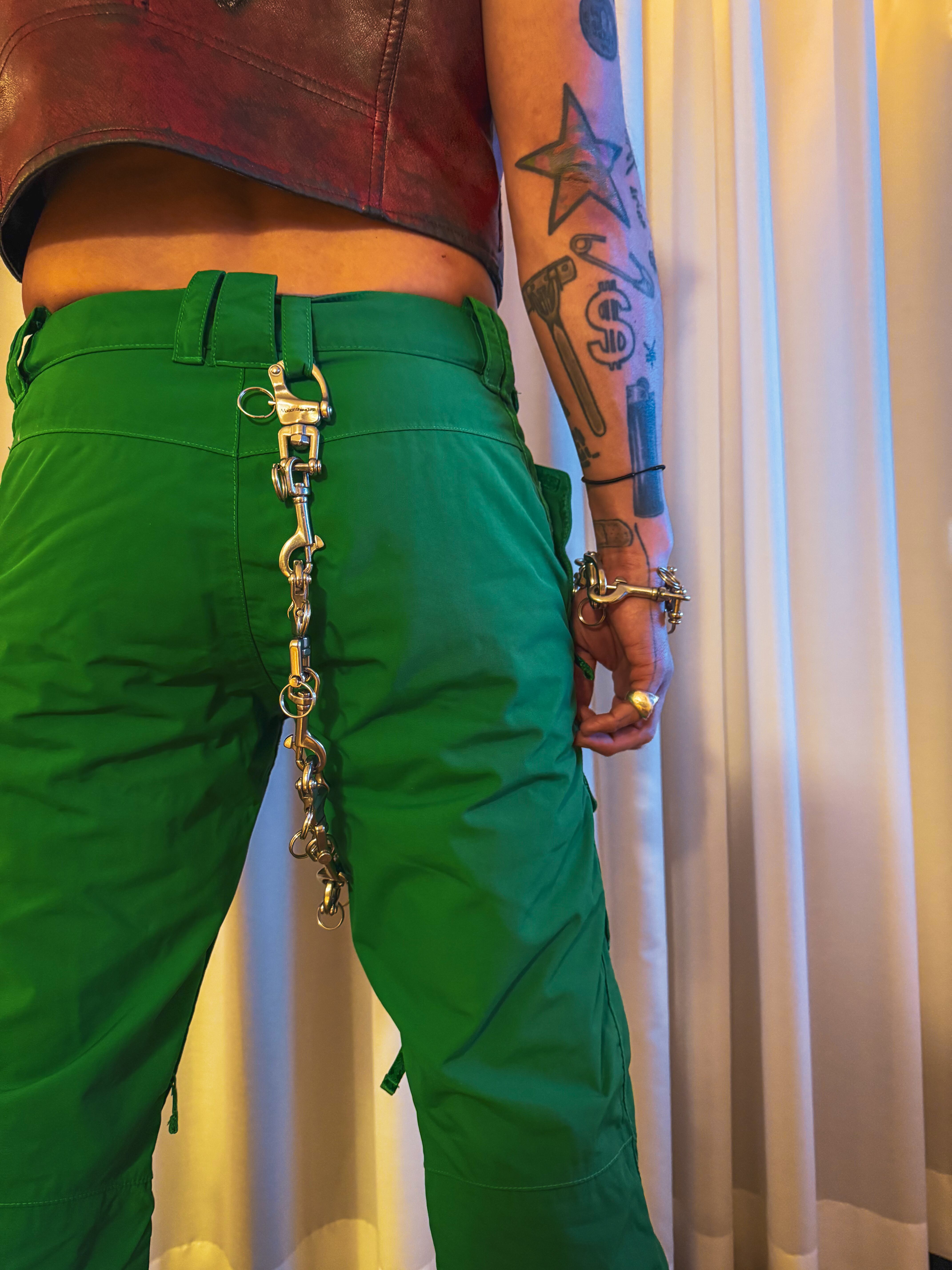 ラッパー、クリエイター、デザイナーとして活躍する 平本ジョニー のゲストモデルシグネチャーウォレットチェーン。