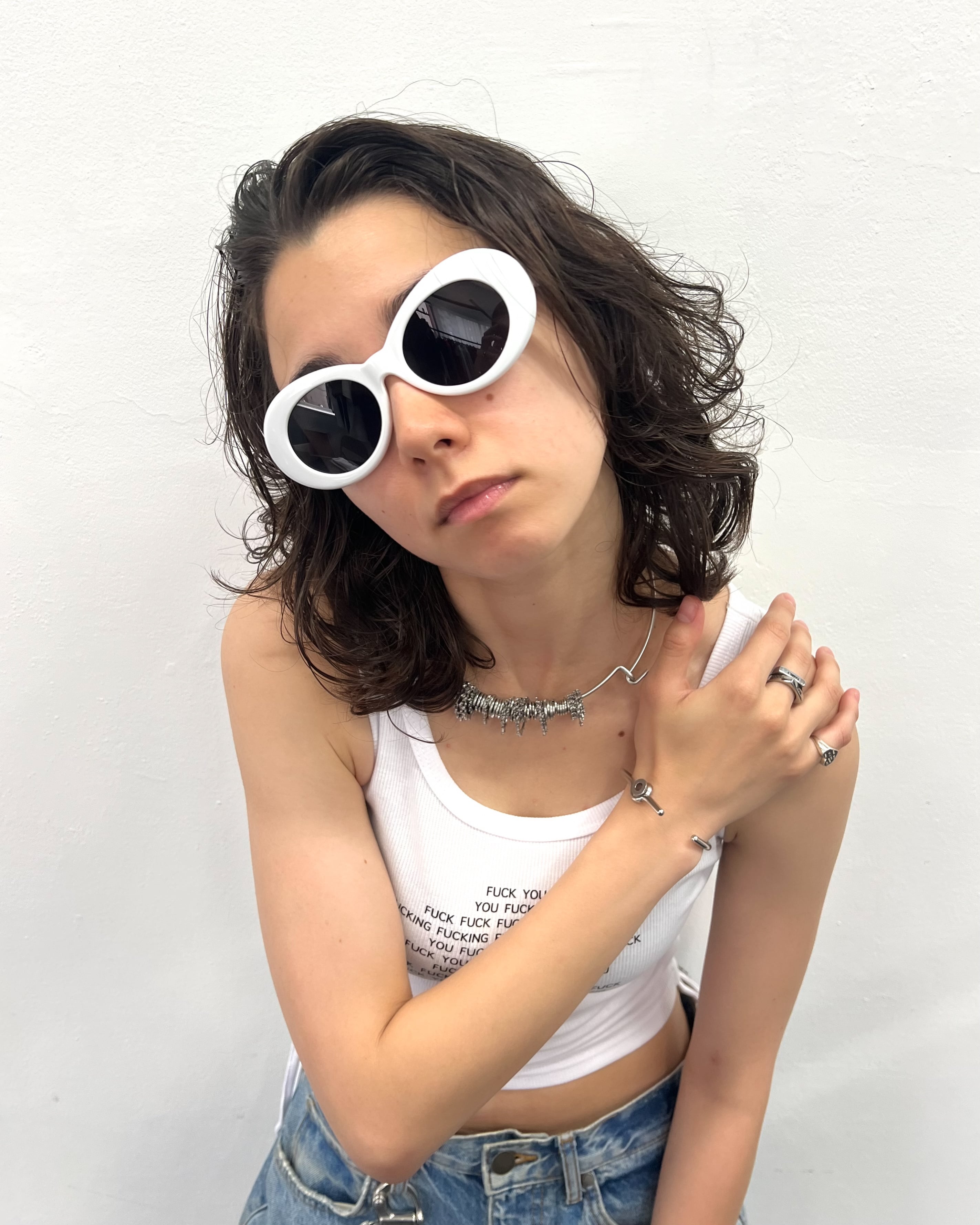 のミュージックビデオ で着用されているネックレス「PRETTY COITUS NECKLACE 04」と同型で、チャーム素材がオール・ステンレスのアイテムとなります。