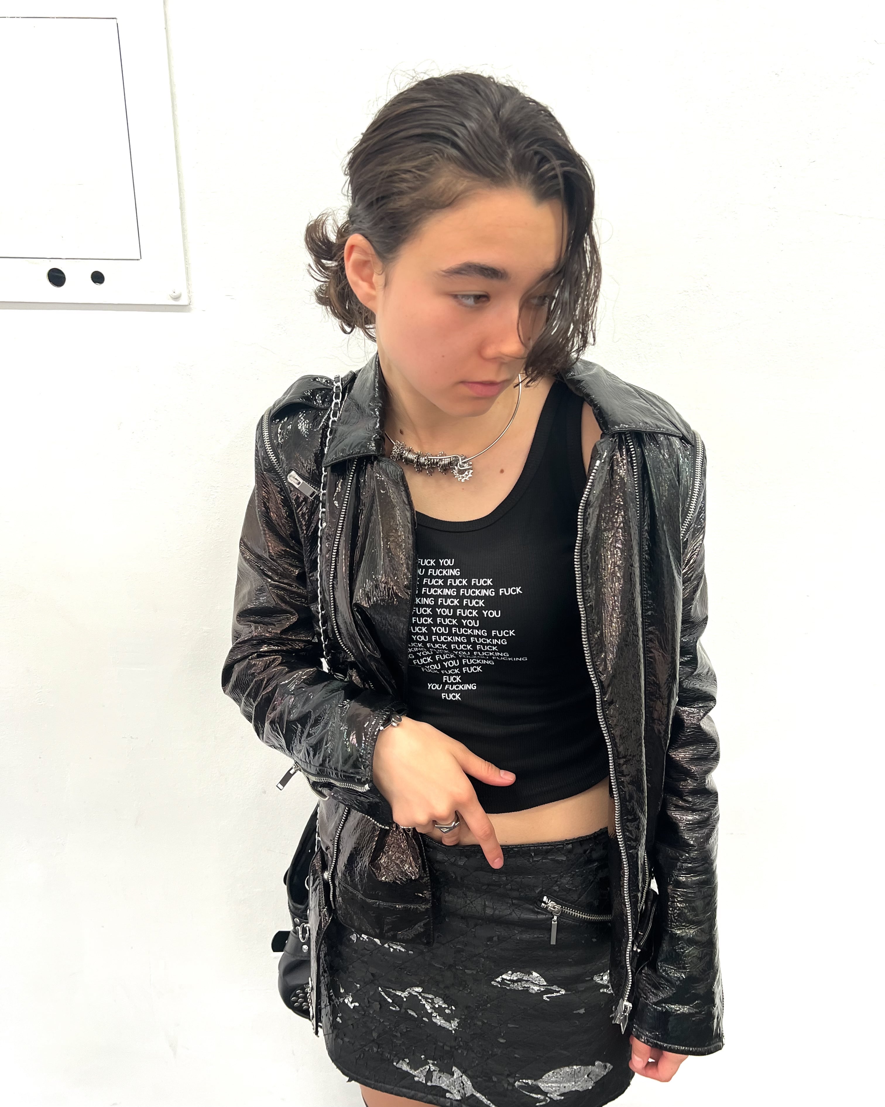 Stainless steel necklace born from Shake Junzi's punk couture identity, using stainless steel industrial washers as charms.